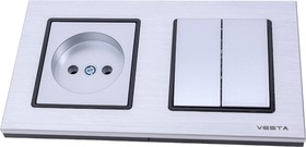 Electric Комплект-2 -Electric Exclusive Silver - Выключатель 2-клавишный + Розетка без заземления FRM050211SER1935 ₽
